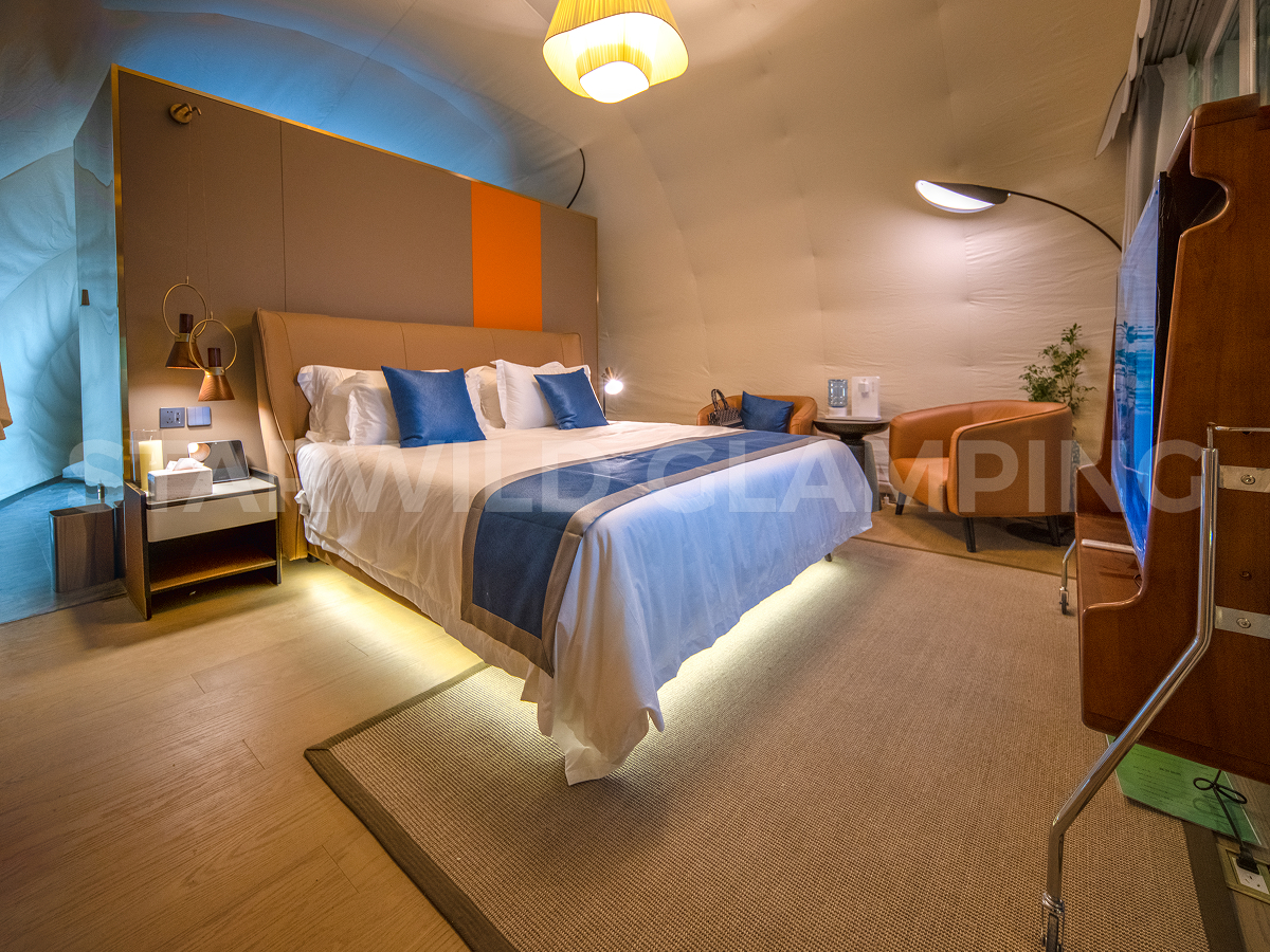 星链帐篷尤其注重场景融合——若项目临水,其灵动曲线与大舷窗倒映湖光,可塑造诗意滨水场景;若依山而建,则能以有机形态呼应山势,成为激活自然氛围的艺术建筑符号。适用于高端野奢住宿、景观餐厅、自然展厅等多重业态,实现美学与功能的和谐统一。
