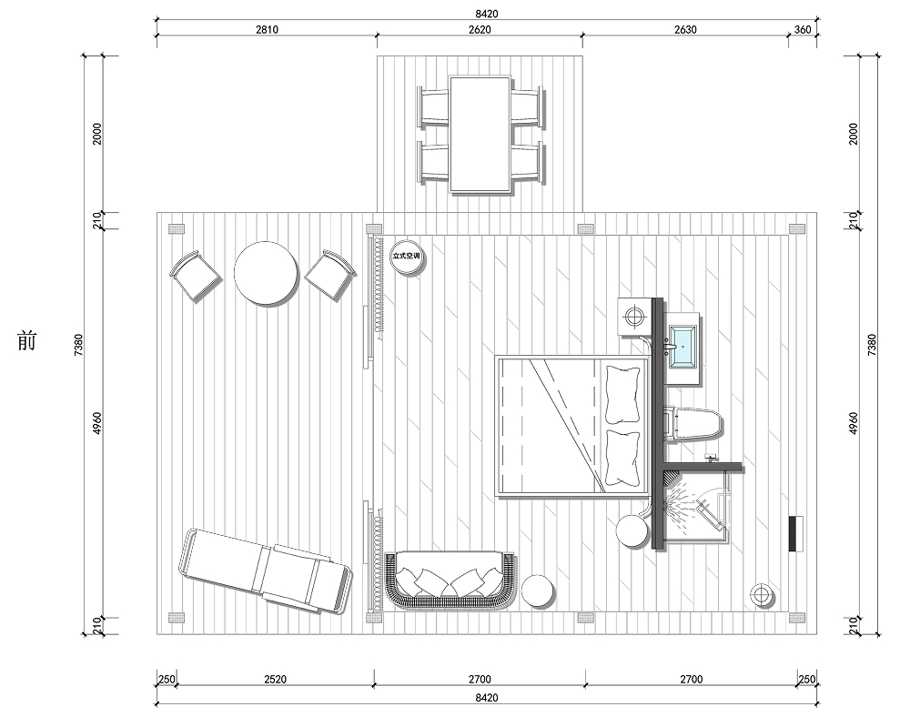 其最大亮点在于侧方搭载的独立天幕系统,形成一个完全独立的户外休闲区,与住宿单元自然分离又彼此呼应,不仅拓展了实际使用面积,更赋予宾客一方私属的观景、品茗或静读空间,显著提升入住仪式感与体验价值。