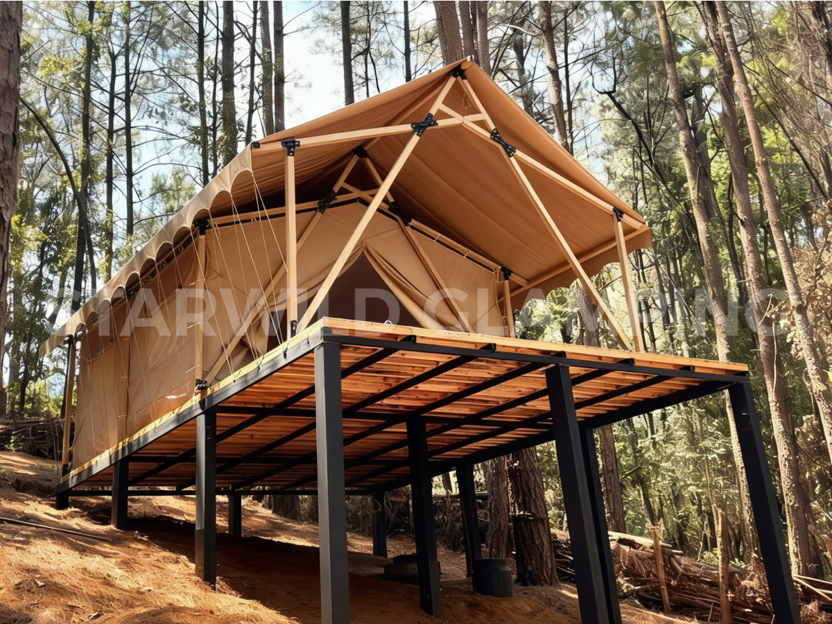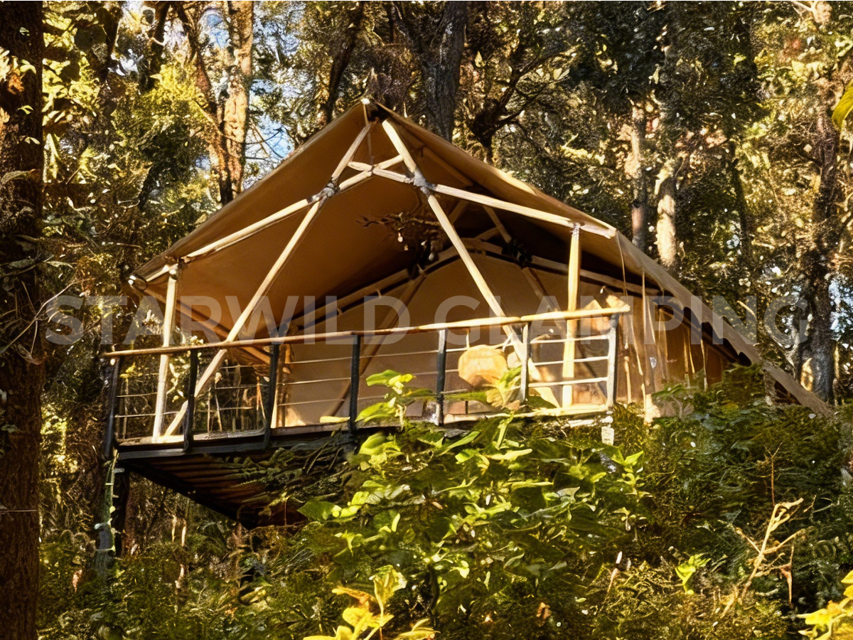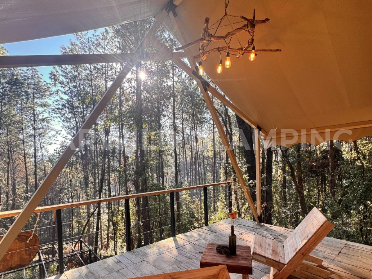 在气候防护方面,六芒星帐篷可选配防寒保温棉,有效阻隔冷热空气交换,延长季节性运营周期,提升室内舒适度。外层篷布采用高性能膜材,具备优异的防水、抗紫外线及自洁性能,确保长期户外使用的可靠性。 六芒星帐篷尤其适用于追求设计感与功能兼备的精品民宿、主题餐厅、艺术营地及活动庆典场景,以其独特的建筑语言,为项目注入神秘而迷人的气质。