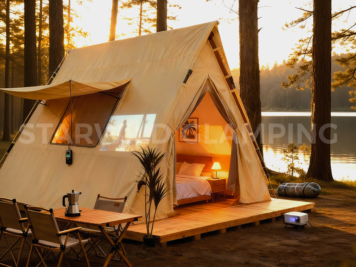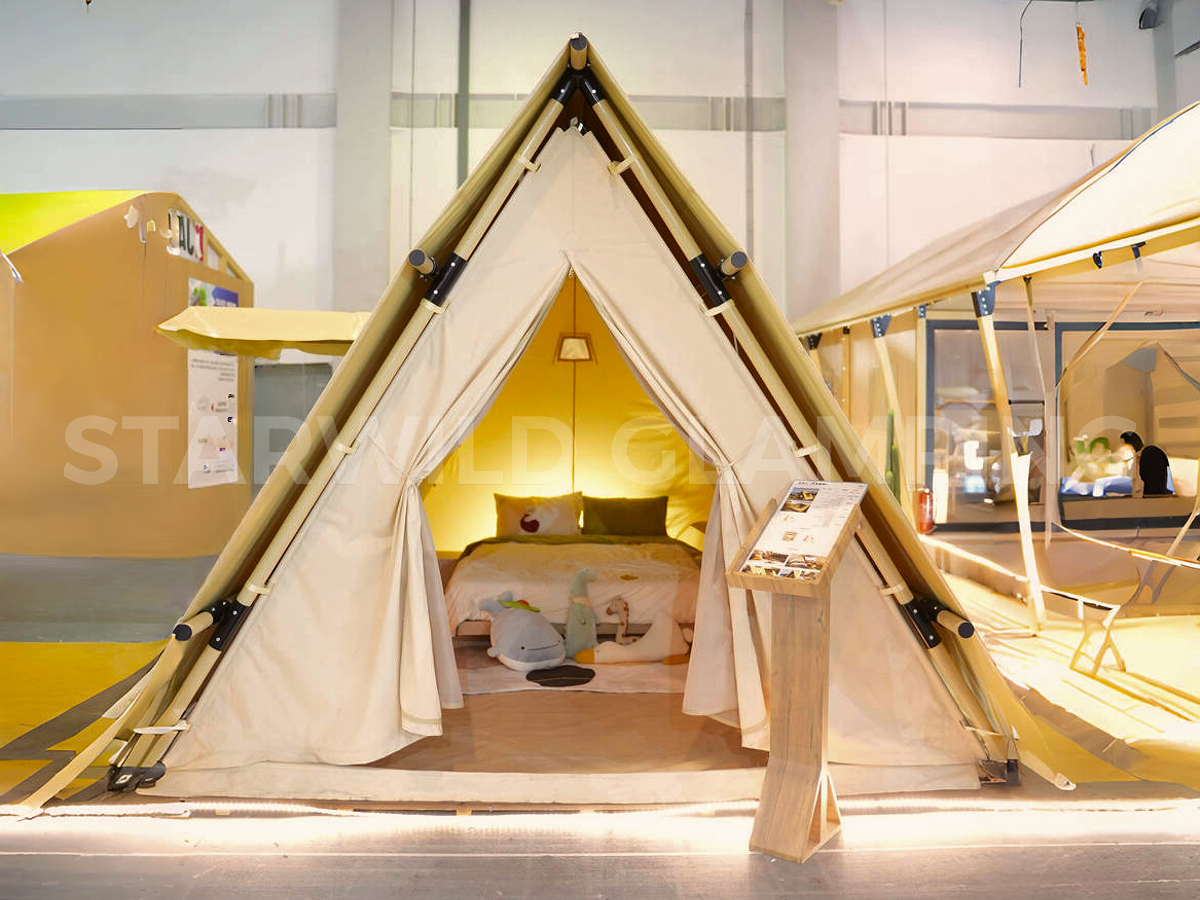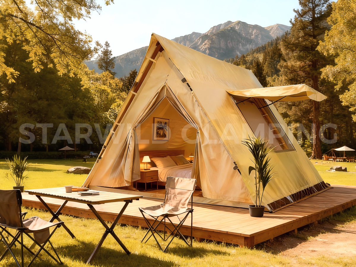 北极星帐篷以极简的三角形几何外观,在自然场景中轻盈点缀而不喧宾夺主,用最纯粹的建筑语言,传递出质朴而高级的美学气质。