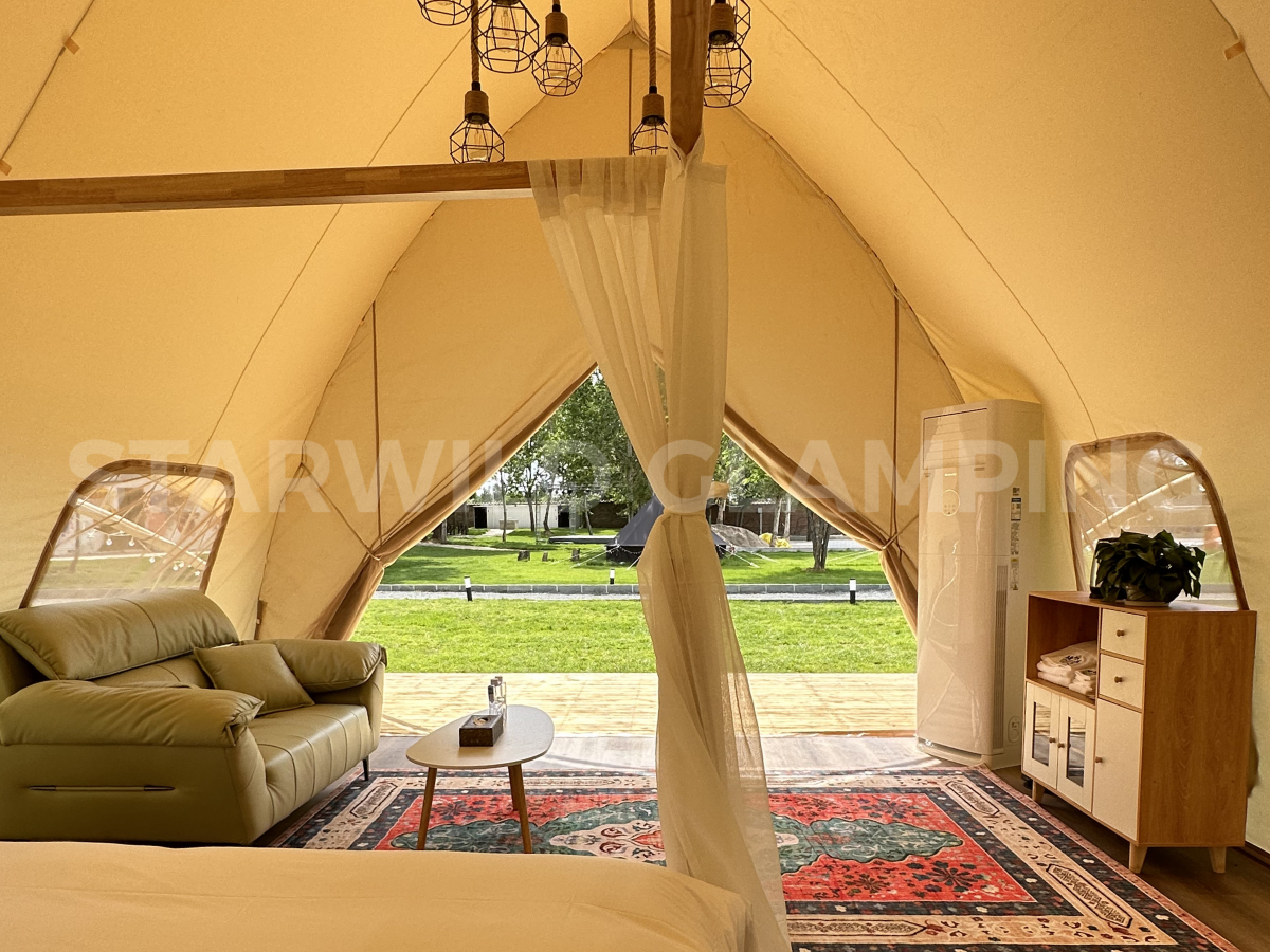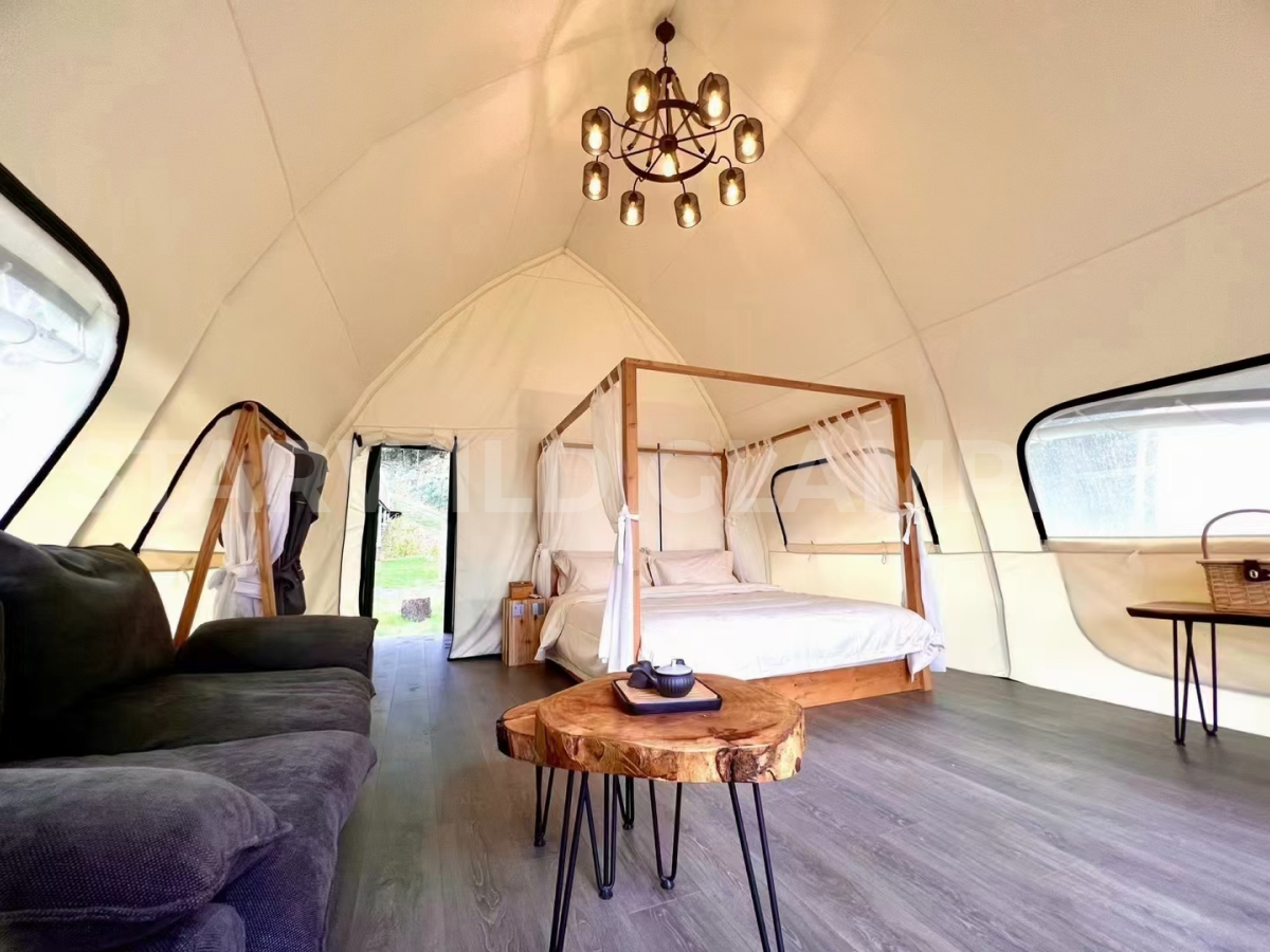 帐篷采用灵活可变的内部设计,配备可整体拆卸或卷起的活动隔断系统,轻松实现空间自由切分与整合,满足多样化的场景布局需求。无论是作为连贯开放的多功能厅,还是划分为私密独立的客房与餐饮区域,均能高效适配,极大提升空间利用率。