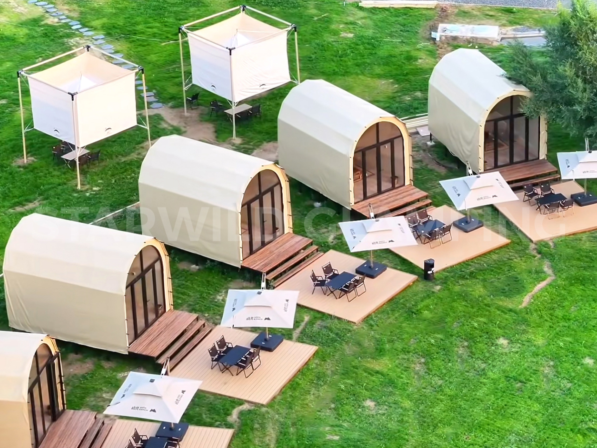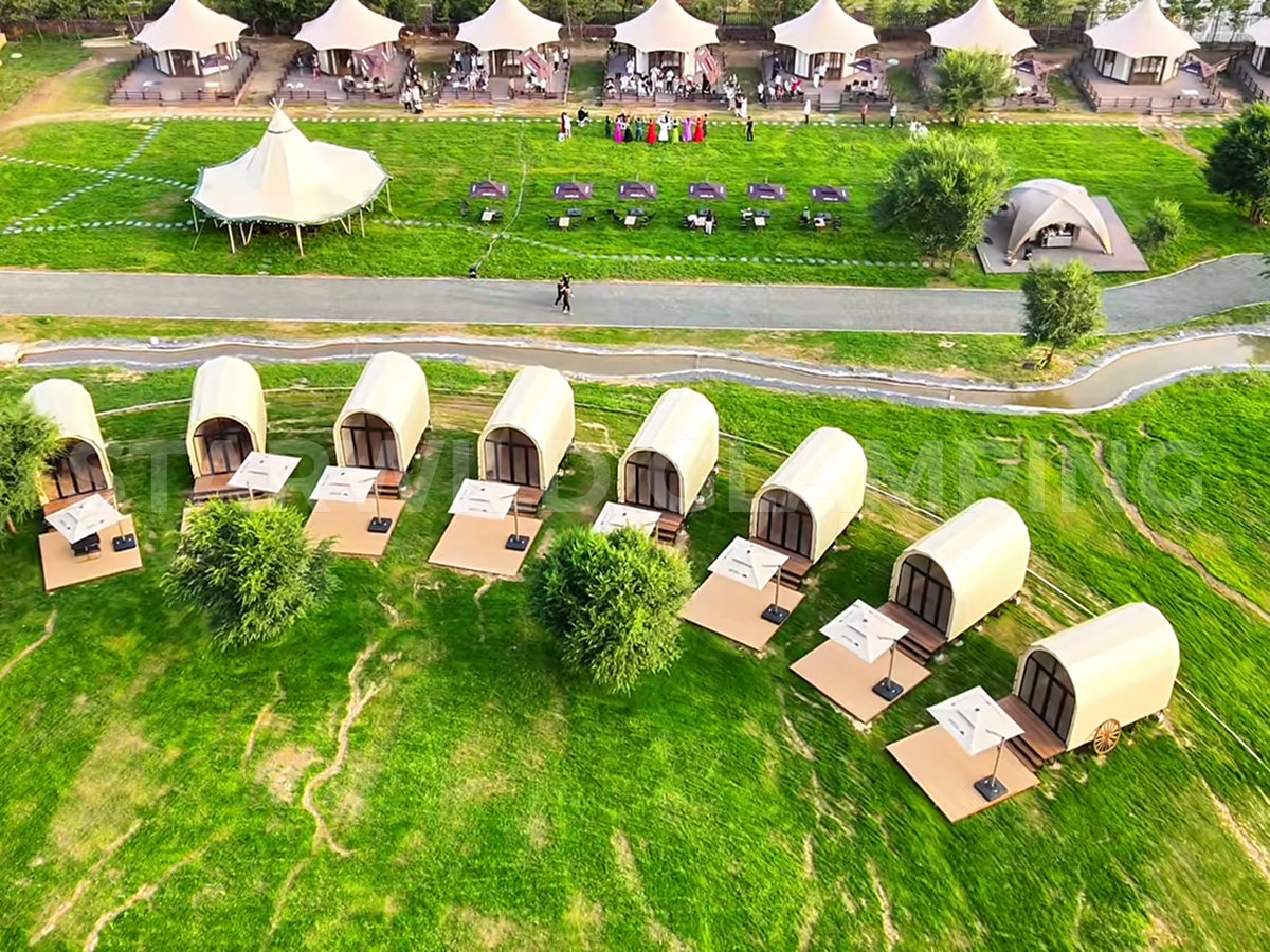 马车帐尤其适用于追求差异化体验的网红营地、精品民宿、主题度假村及夜间经济场景。它不仅是一件功能产品,更是一个自带流量的传播载体,以其独特的建筑语言与空间体验,成为项目中最具记忆点的打卡圣地。