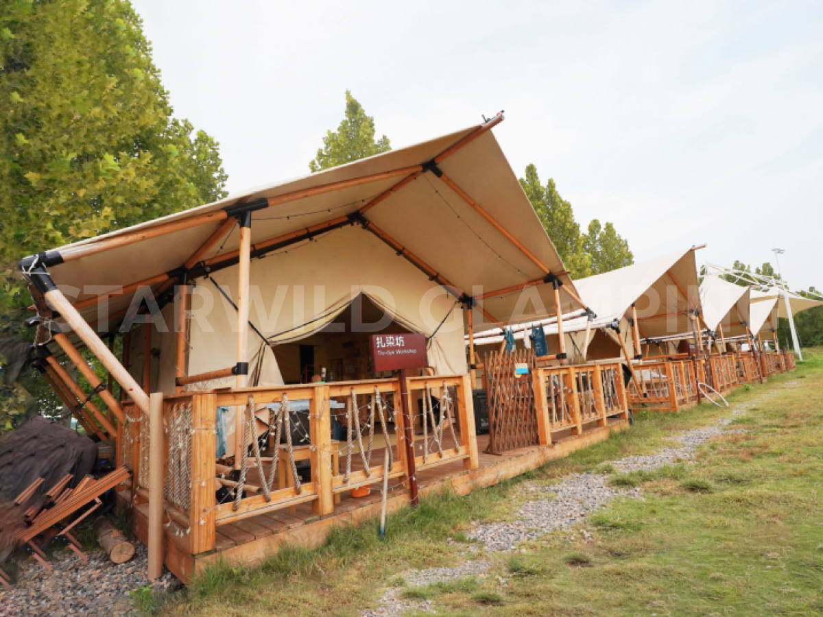 畅居帐篷提供多种配置方案,可完美适配酒店住宿与餐饮经营两大核心业态。作为住宿单元,其规整的内部空间可规划为温馨客房;作为餐饮空间,则可营造出田园气息浓郁的用餐环境。此外,还可广泛应用于团建活动、商业拍摄、快闪市集、茶室书吧等多元场景,以其经典耐看的外观与灵活适配的功能,成为营地项目中“一帐多用”的可靠之选。