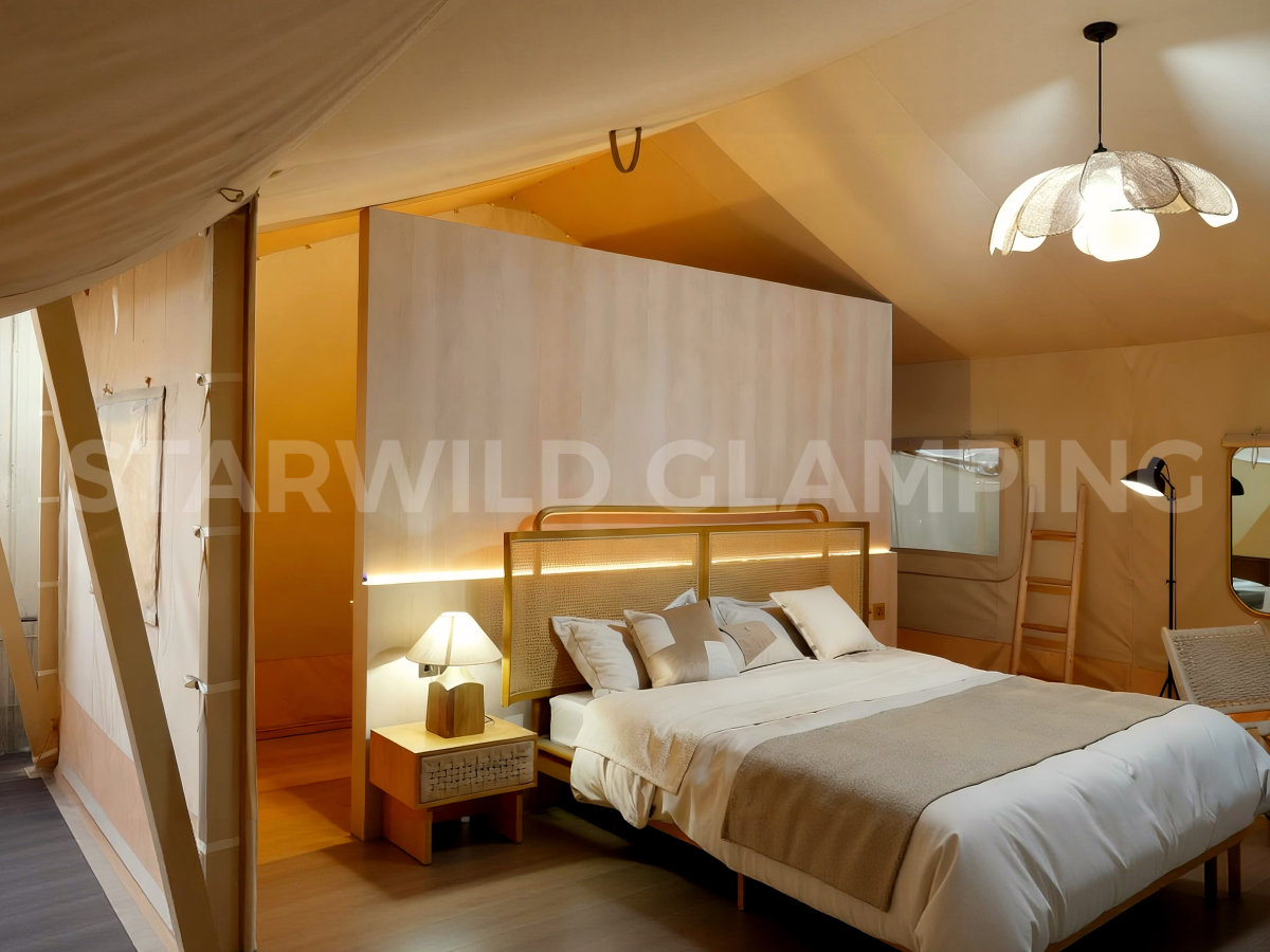 整体空间布局以人与自然的亲密互动为原点,既保障居住的私密与舒适,又以开放的姿态拥抱环境。水星帐篷尤其适合打造高端野奢民宿、轻奢露营单元及精品度假客房,是追求差异化体验与空间品质的优选之作。