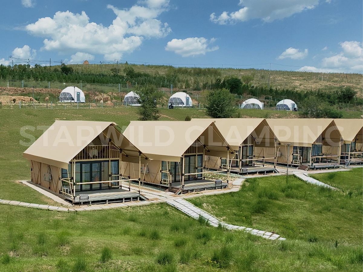 星野上木星帐篷有单层和双层loft两种款式。其双层Loft款式采用创新的垂直空间布局,在有限的占地面积内实现功能与体验的双重升级。同时提供单层款式,满足不同项目定位与预算需求。无论是作为家庭亲子套房、情侣蜜月客房,还是精品民宿的亮点单元,木星帐篷都能以其独特的建筑形态与空间体验,成为营地中令人过目不忘的记忆坐标。