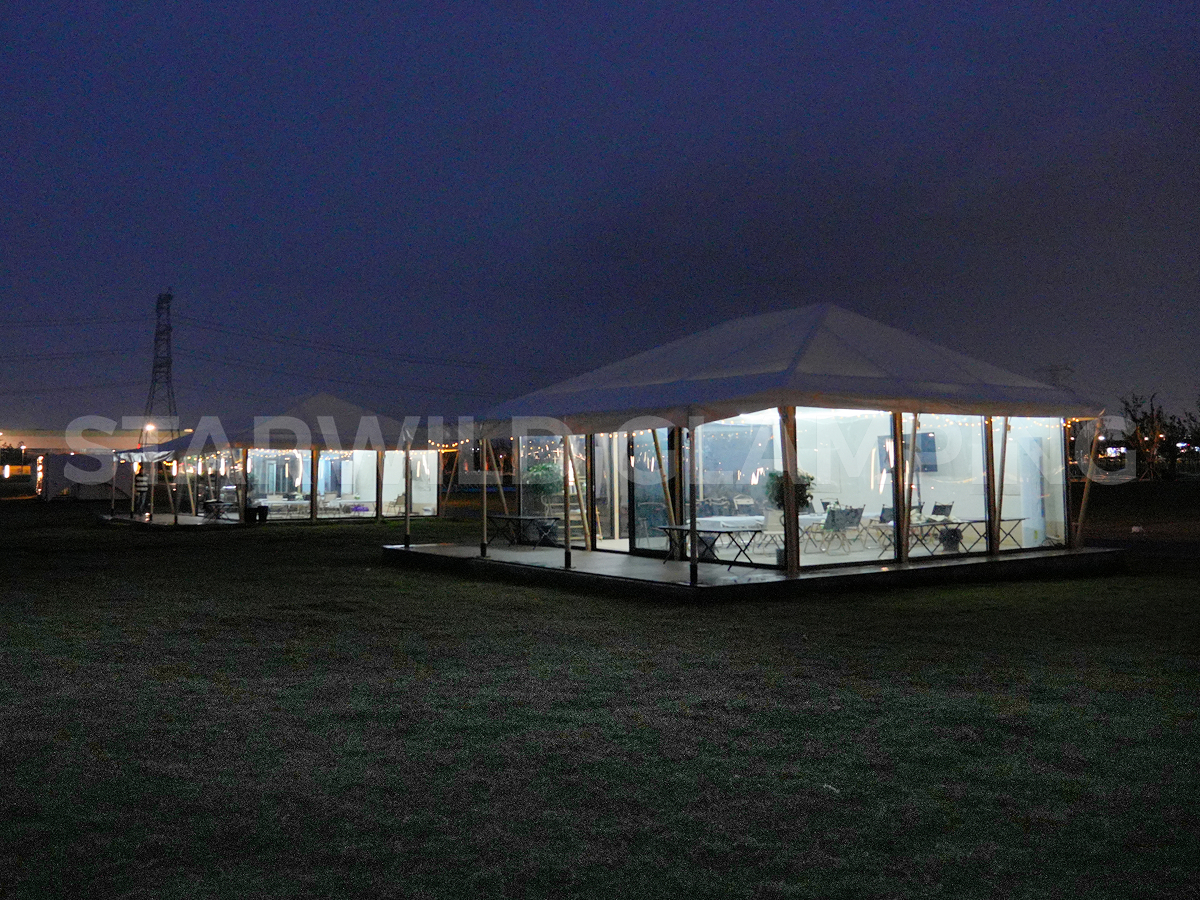 紫微星帐篷适用于追求极致体验的高端度假酒店、野奢民宿、VIP接待会所及主题宴会空间,是彰显项目品质与格调的旗舰级产品。
