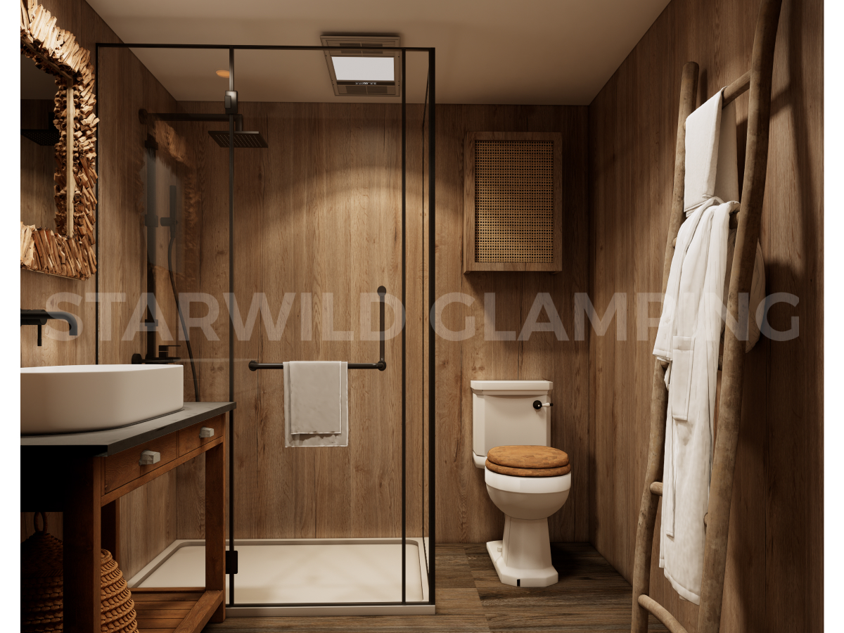 帐篷拥有近50平的超大规整空间,内部采用完全无柱的长方形布局,无异形角落,为功能规划提供极高的操作自由度。无论是打造奢阔的单人房、雅致的双人房,还是配备会客区的套房,均能从容实现,完美满足五星级酒店的配置要求。