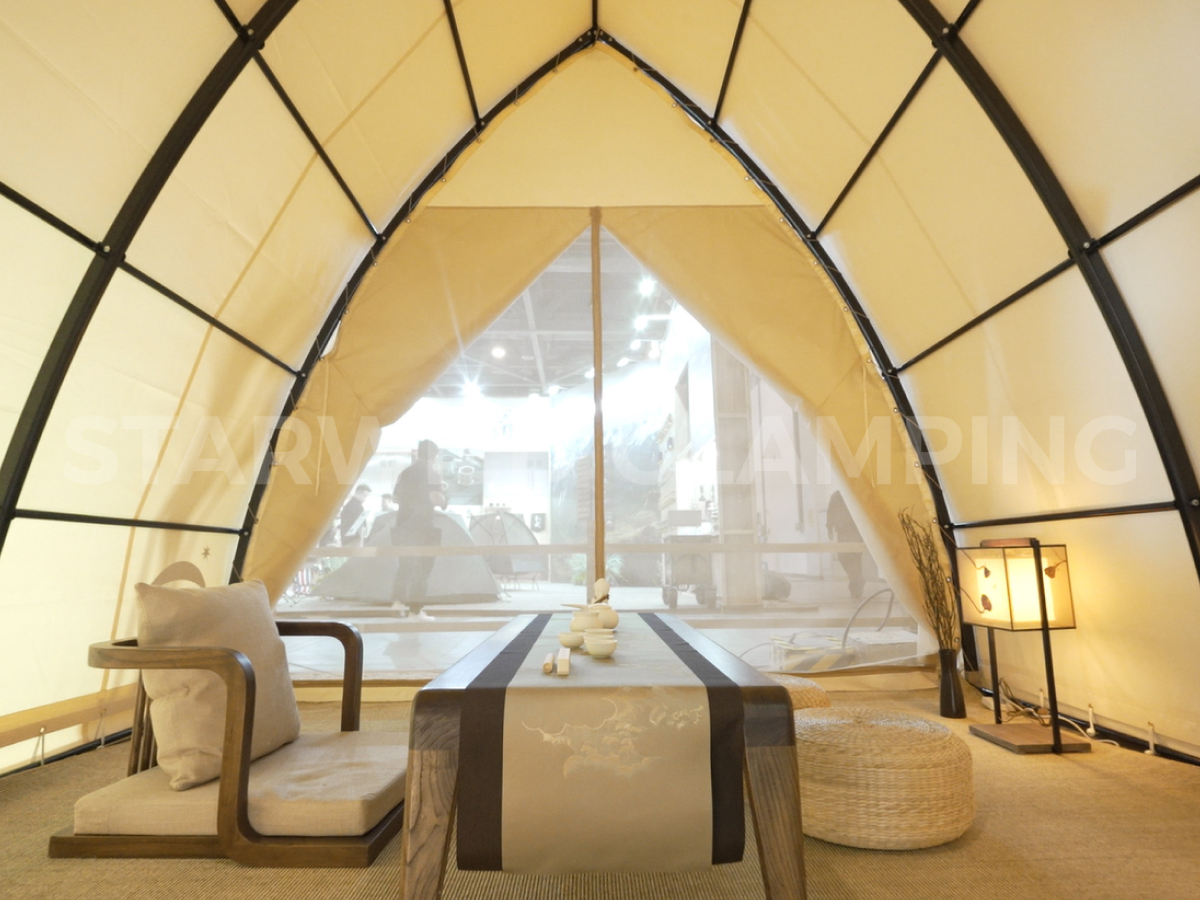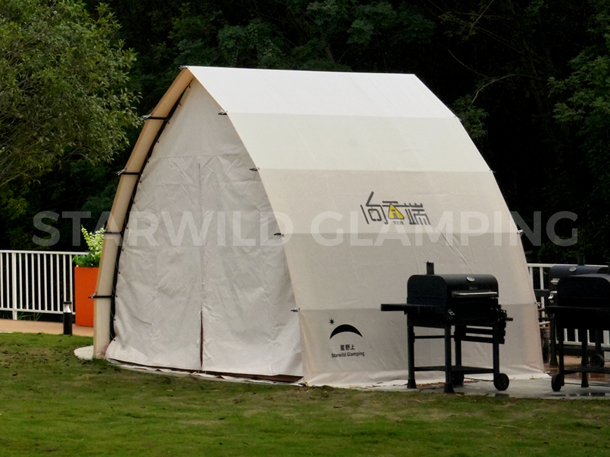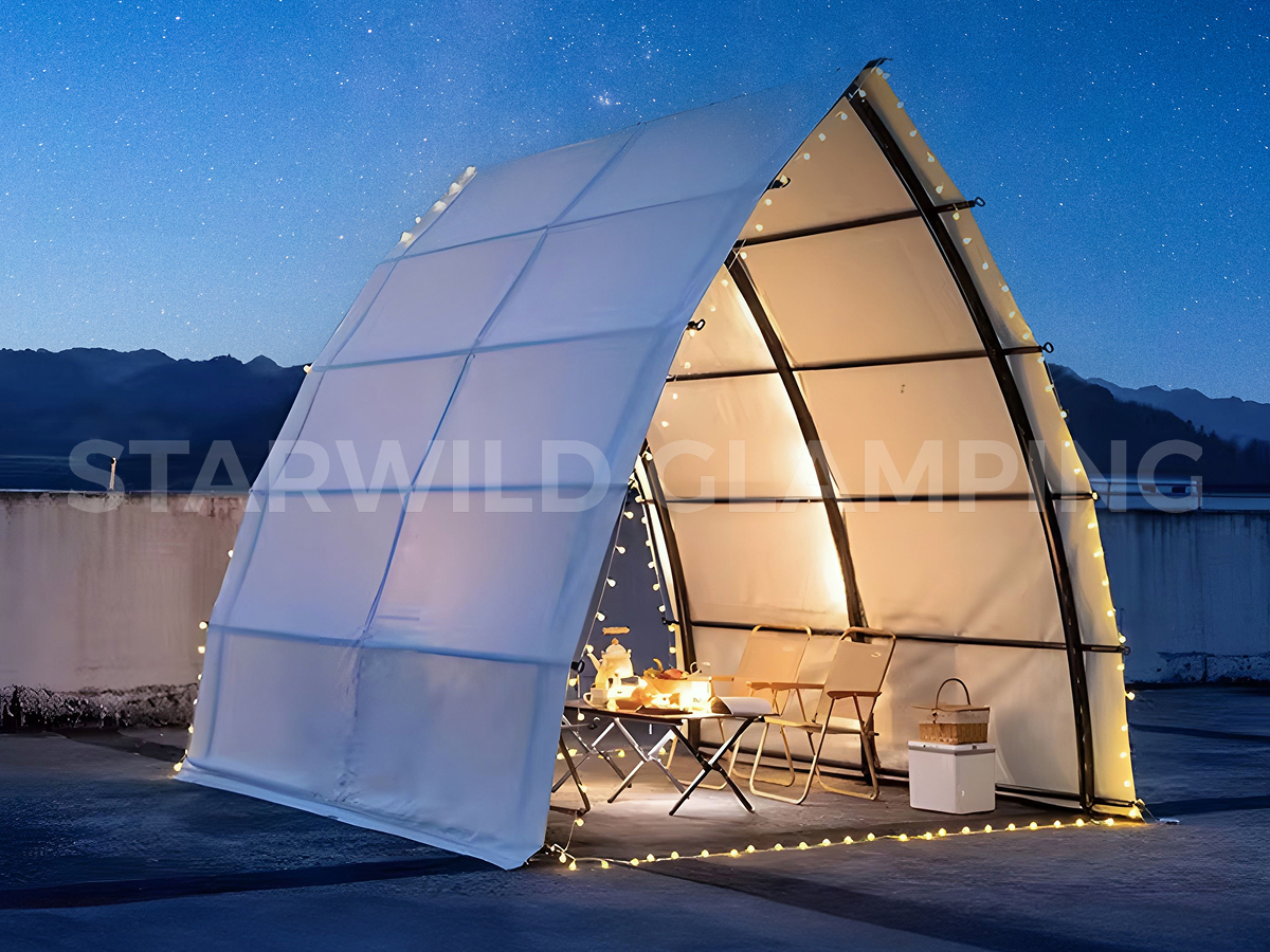 帐篷提供两种搭建形态,灵活适配不同场景需求:前后可加装门窗,形成半封闭的舒适用餐空间,有效调节室内微气候;亦可完全开放使用,营造通透开阔的户外用餐体验,让宾客在享受美食的同时,与自然零距离接触。
