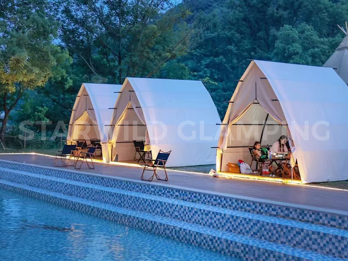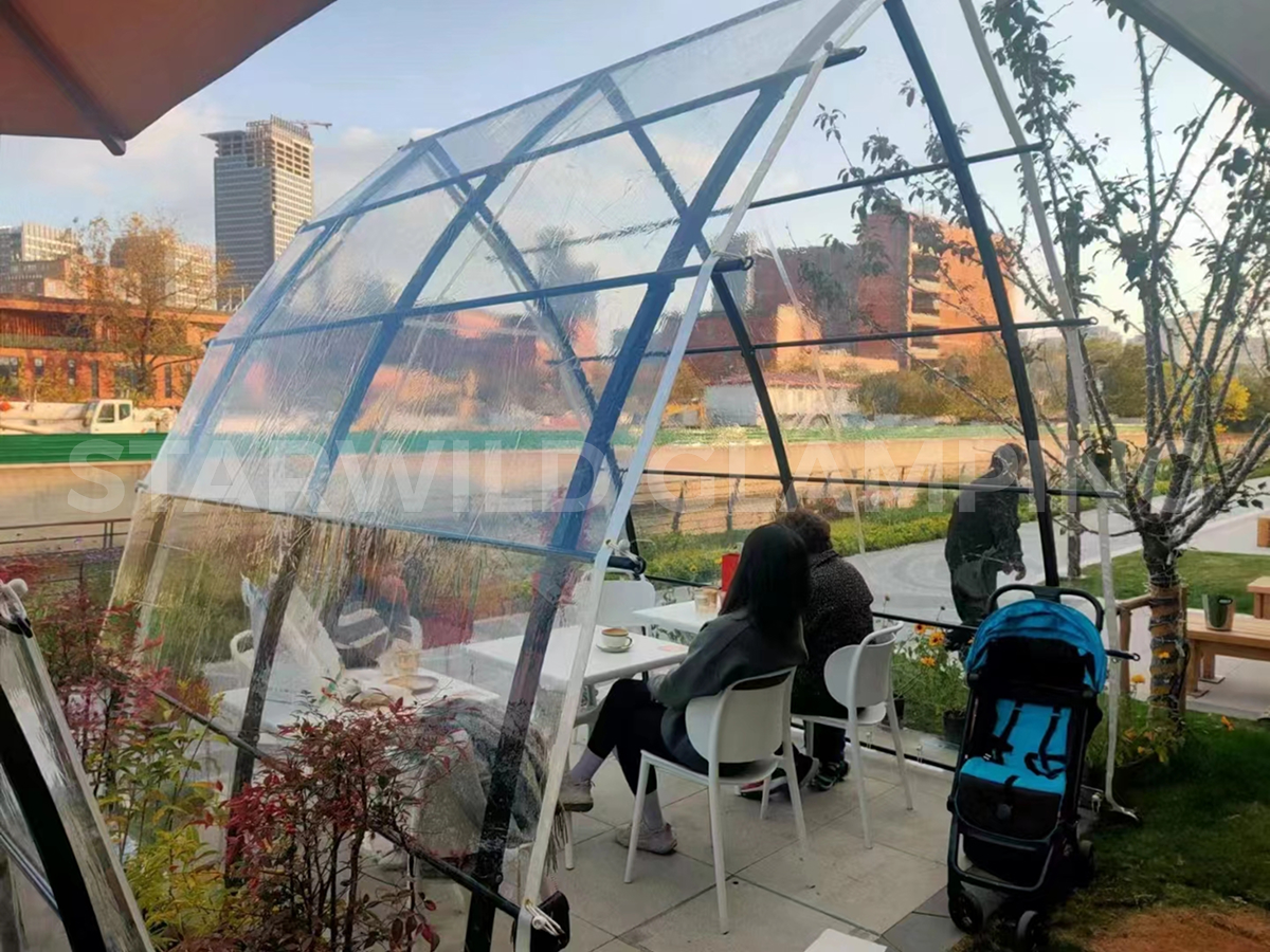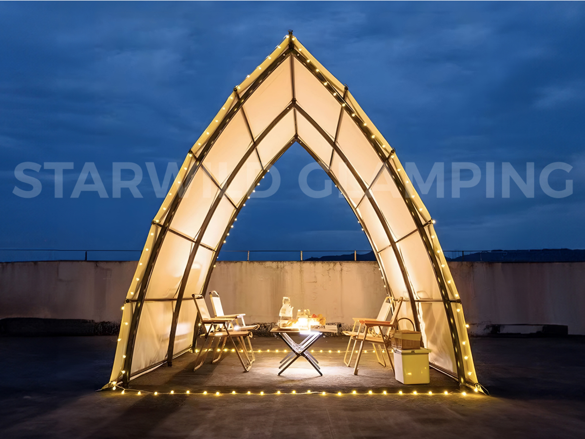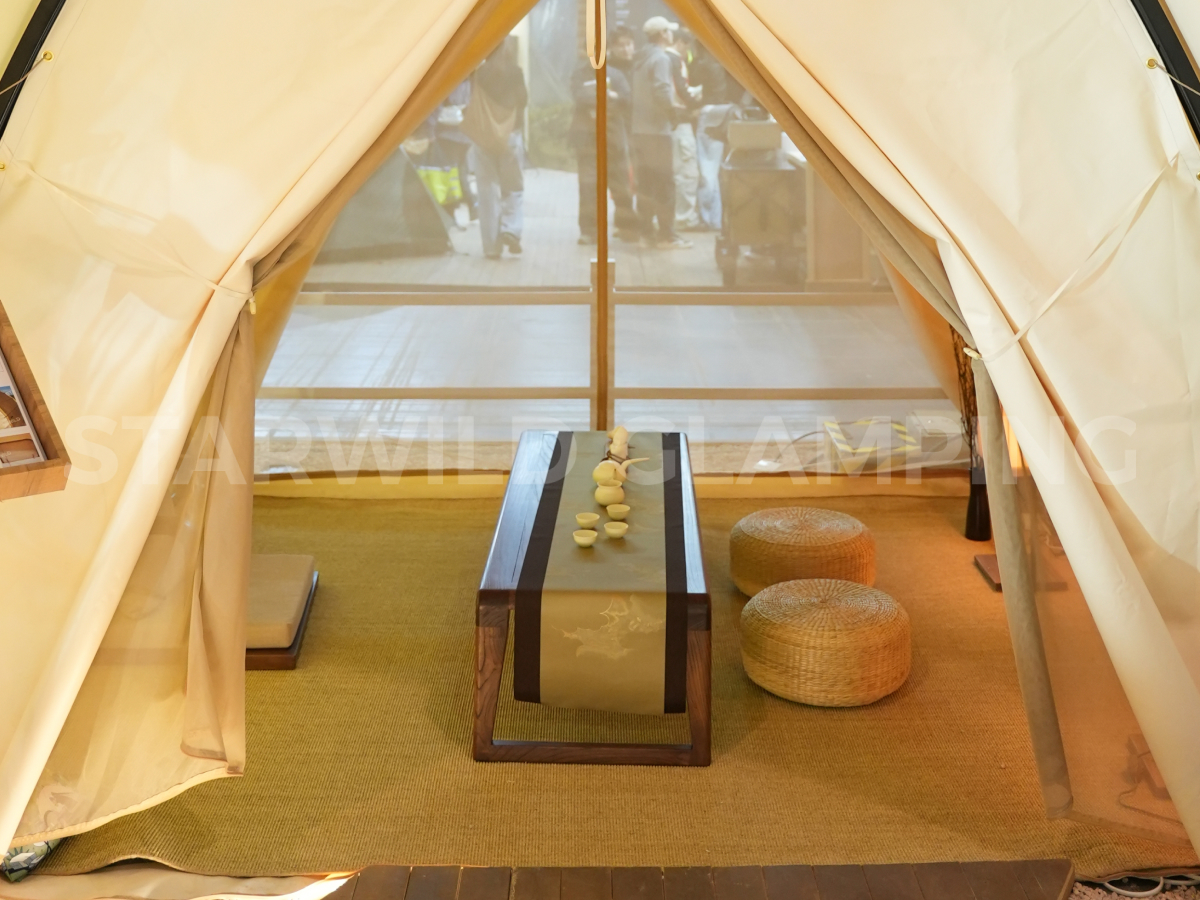 帐篷提供两种搭建形态,灵活适配不同场景需求:前后可加装门窗,形成半封闭的舒适用餐空间,有效调节室内微气候;亦可完全开放使用,营造通透开阔的户外用餐体验,让宾客在享受美食的同时,与自然零距离接触。