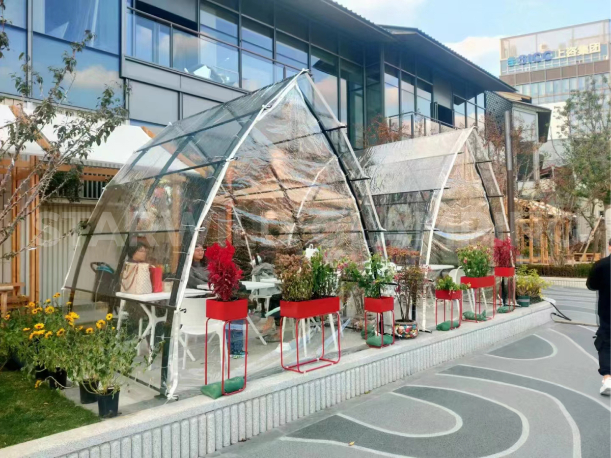 帆船餐厅帐篷尤其适用于滨海餐厅、湖畔酒吧、露营餐饮、主题派对等多元场景。其独特的造型语言与灵活的功能配置,使其不仅是一个用餐空间,更成为承载社交、传播品牌的核心载体,为项目注入扬帆起航的活力与想象。