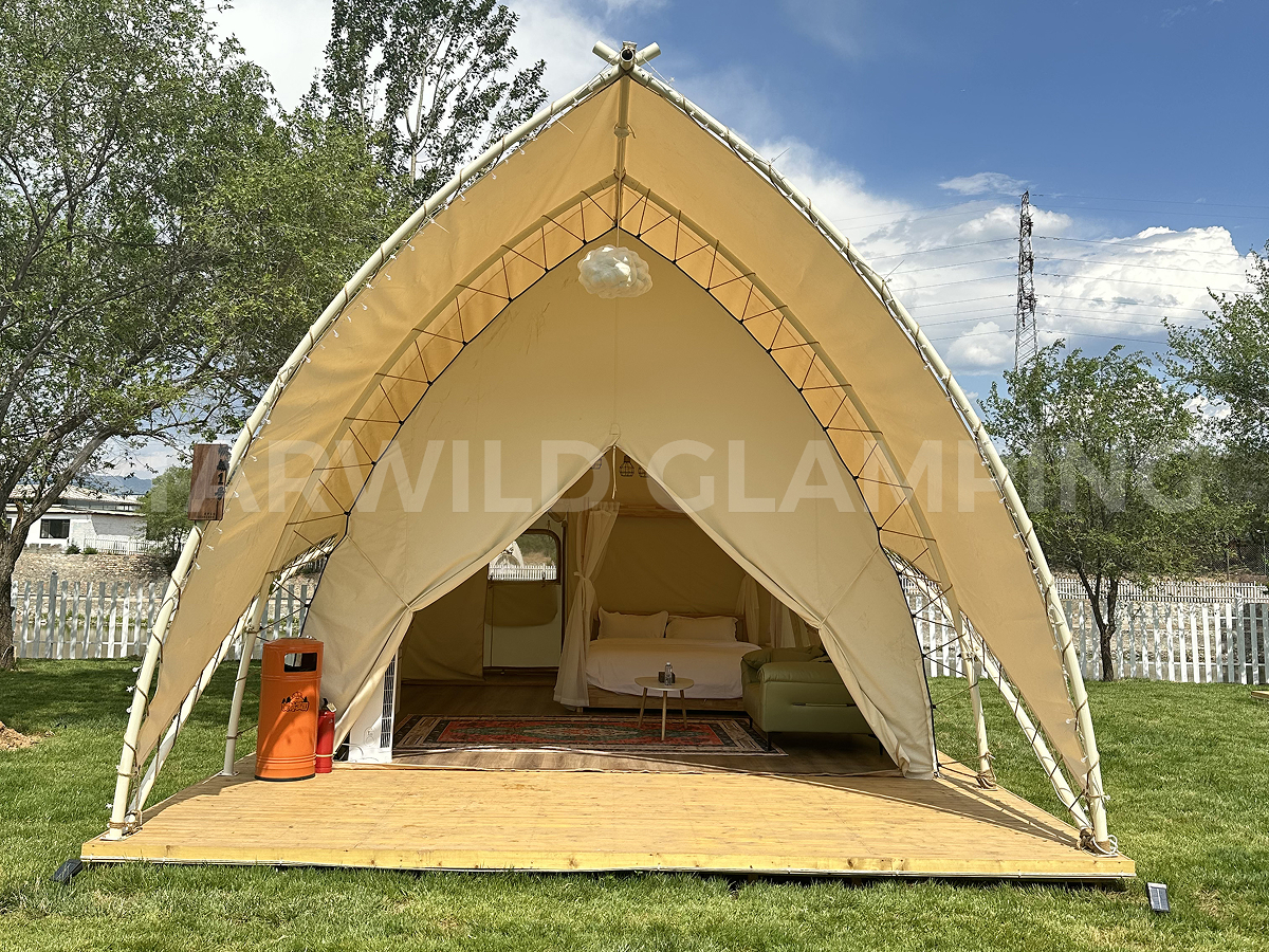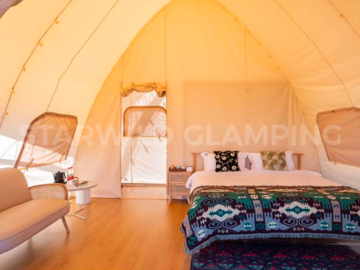 帐篷采用灵活可变的内部设计,配备可整体拆卸或卷起的活动隔断系统,轻松实现空间自由切分与整合,满足多样化的场景布局需求。无论是作为连贯开放的多功能厅,还是划分为私密独立的客房与餐饮区域,均能高效适配,极大提升空间利用率。