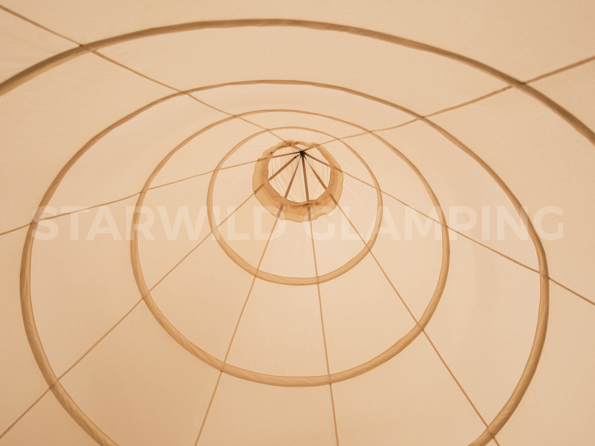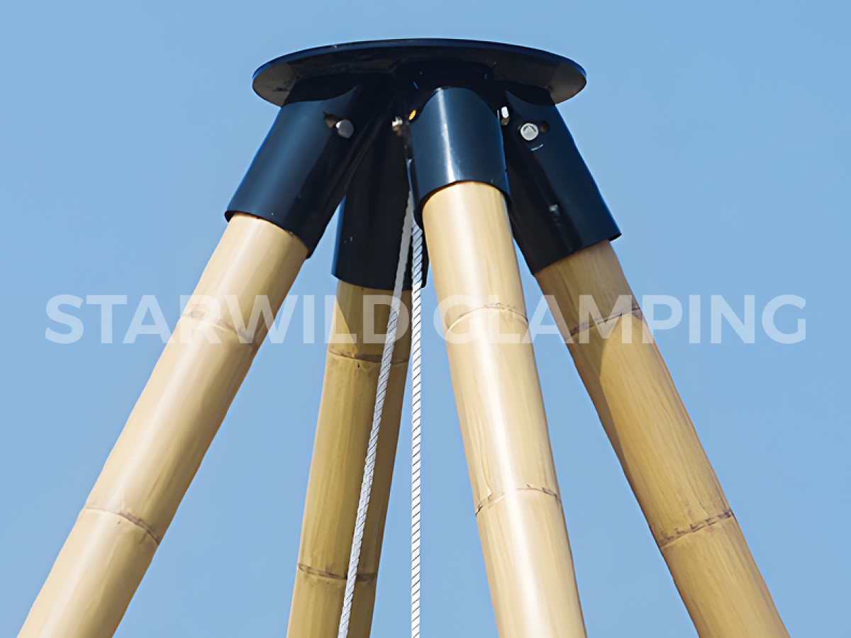 帐篷采用金字塔型结构设计,通过几何力学的优化,实现出色的结构稳定性与抗风性能,无惧风雨侵袭。骨架选用户外专用竹色烤漆镀锌钢管,在保留竹材自然色泽与温润质感的同时,赋予其金属的强度与耐久性。