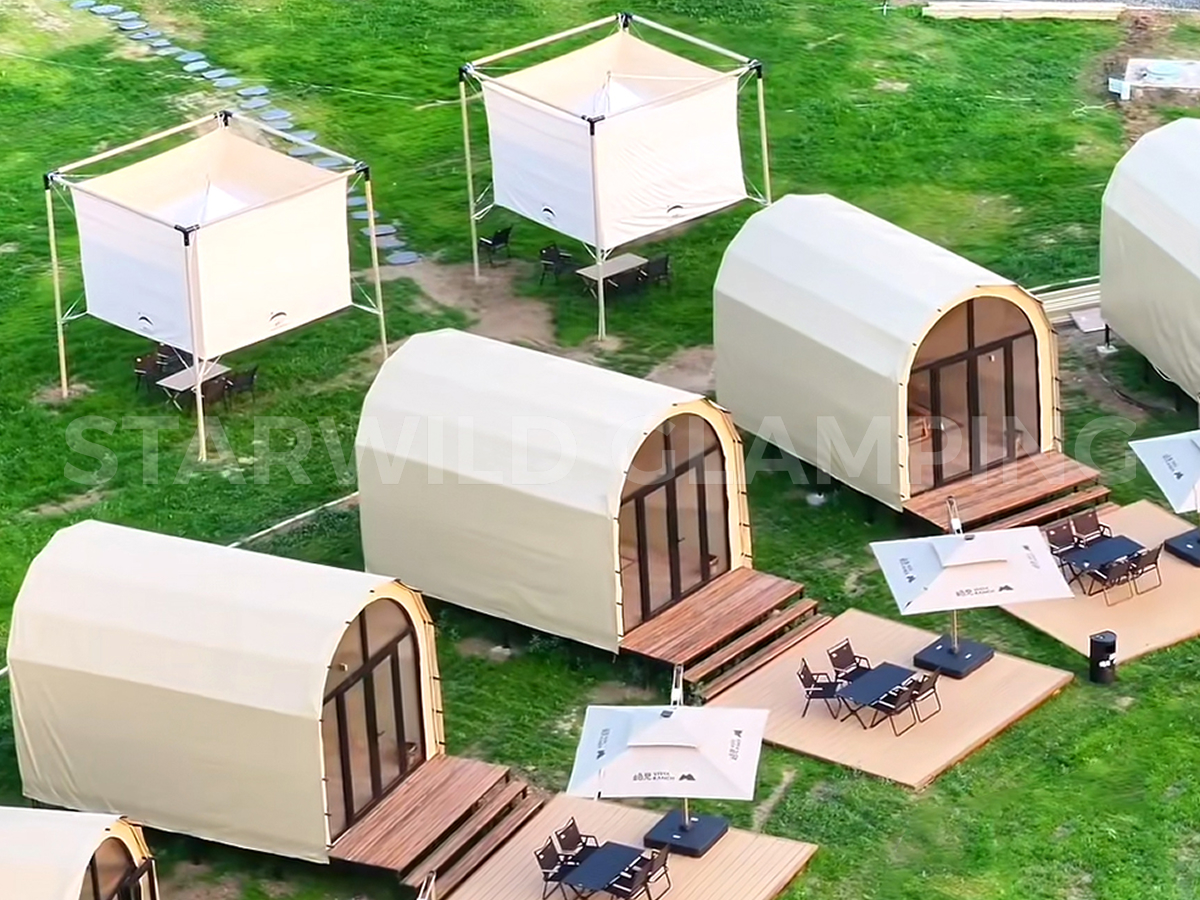 其外观汲取传统灯笼的造型灵感,以现代设计语言重构为方正端庄的几何形态,在自然场景中呈现出独特的高级感与仪式感。高颜值的造型设计天然具备网红属性,无论是独立成景还是成组布局,都能瞬间提升营地的视觉品位,成为宾客镜头追逐的打卡圣地。
