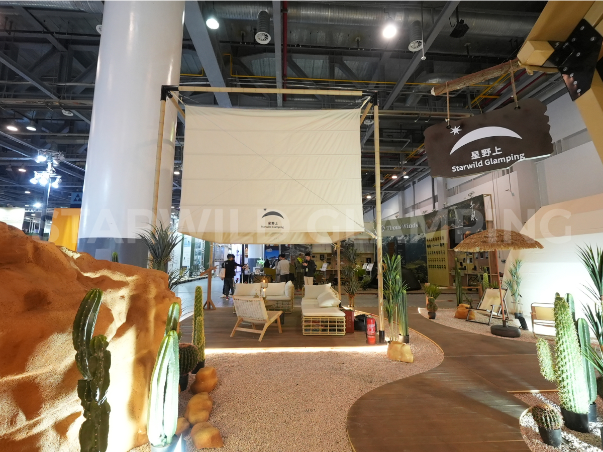 骨架选用户外专用竹色烤漆镀锌钢管,在保留竹材自然色泽与温润质感的同时,赋予其金属的强度与耐久性,实现美学与功能的完美统一。篷布采用高强刷胶科技棉布料,具备卓越的防水防雨、防霉自洁、防晒阻燃等性能,确保在多种气候条件下的安全舒适使用。